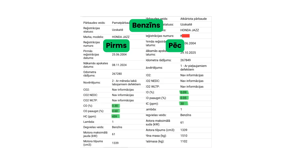 Pakalpojuma cena ir atkarīga no dzinēja tilpuma.